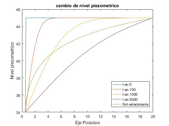 title('Evolucion del nivel piezometrico por Euler Implicito');