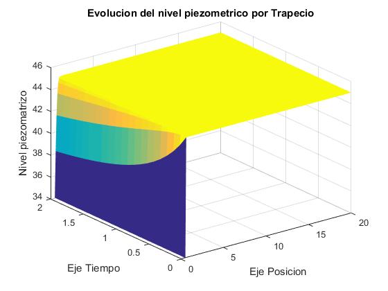 title('Evolucion del nivel piezometrico por Trapecio');6 Gráfica solución