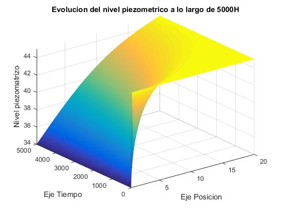 title('Evolucion del nivel piezometrico a lo largo de 5000H')