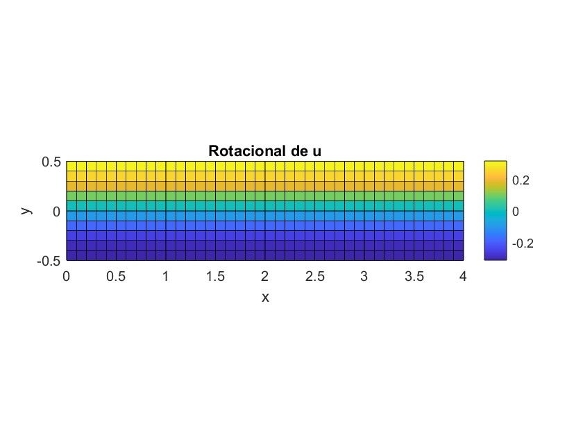 El campo de desplazamientos está definido en el dominio rectangular [math] R = [0,4]\times[-\tfrac12,\tfrac12] [/math] como: