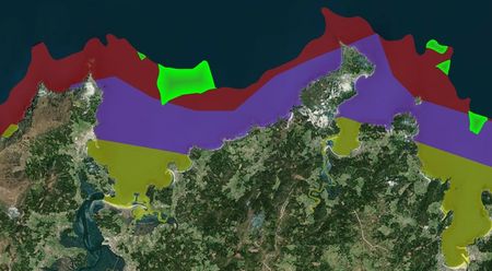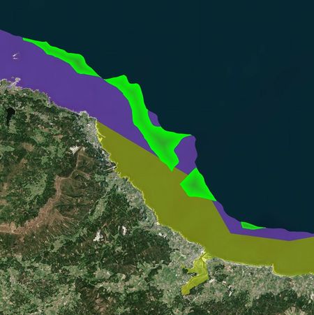 • Digitalización: debido a que algunos datos se nos proporcionaban en formato PDF o JPGE tuvimos que vectorizar a mano todos los caladeros y los mapas de viento, para poder realizar las operaciones anteriormente citas con estos mapas.