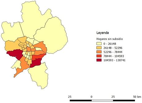 Finalmente, para analizar la movilidad social, se utilizan las herramientas de cálculo vectorial, mediante la diferencia entre la cantidad de hogares de los clusters 1, 3 y 5 de cada comuna en el caso base y en el escenario con el subsidio aplicado.