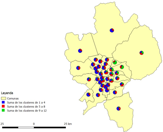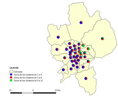 Proporción de clusters en cada comuna, escenario con proyecto realizado