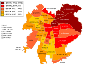Comunas de Santiago de Chile y clasificación según ingreso promedio de hogares (2017) [1]