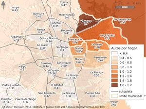 Santiago de Chile se caracteriza por una evidente segregación socio-espacial, lo que impacta directamente en los planes de transporte, considerando que en las zonas con altos ingresos el uso de automóviles particulares es mayor, provocando importantes congestiones vehiculares, mientras que, en zonas con menores ingresos, los usuarios suelen ser cautivos del transporte público, generando el colapso de su capacidad.