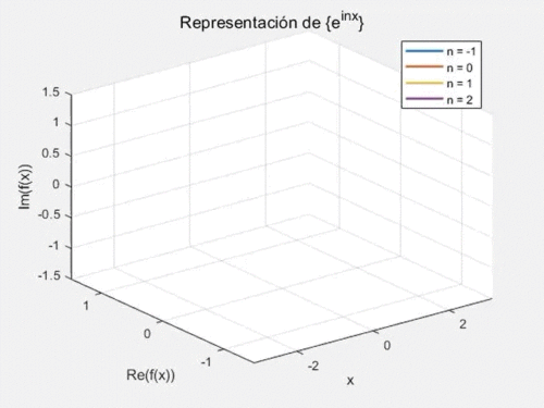 sgtitle('Representación de \{e^{inx}\}', 'Interpreter', 'tex')
