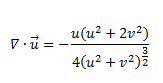 4. Cálculo de [math]σ[/math]: Se recuerda que la divergencia de [math]\vec{u}[/math] es [math]\nabla\cdot\vec u = -2\frac{3u^2+v^2}{u^2+v^2}[/math]