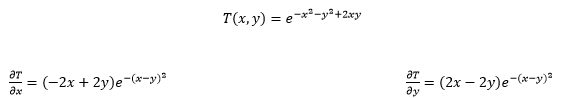 fx=(-2.*xx+2.*yy).*exp(-(xx-yy).^2); % Derivada con respecto a x de la función Temperatura.