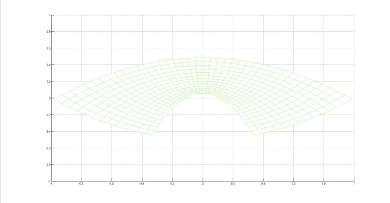 Para representarla se utilizará el siguiente sistema de coordenadas curvilíneas adaptado a la geometría que nos dan: