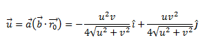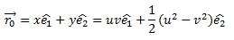 Al realizar una transformación a coordenadas curvilíneas, en nuestro caso de x e y a u y v, el vector de posición [math] \vec{r_o}[/math] se expresará así: