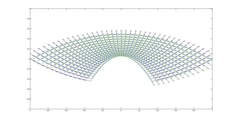 Sabiendo esto, se puede proceder en Matlab al cálculo de las matrices que permitirán posteriormente la representación de las tensiones normales en la dirección que marca [math]\vec{g_u}[/math] y la dirección de [math]\vec{g_v}[/math]: