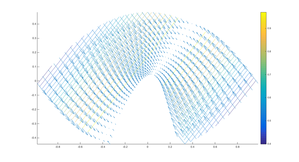 quiver(xx,yy,Ux,Uy); % Representación del campo vectorial de desplazamientos u.