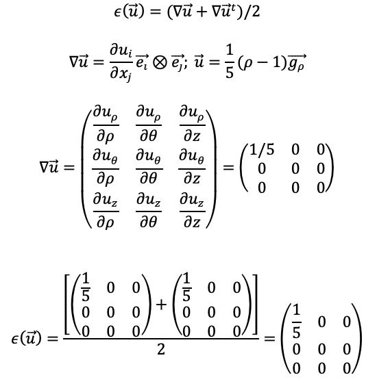 Hemos considerado el campo de desplazamientos [math]\vec u[/math]. Lo hemos calculado sabiendo que: