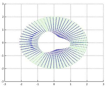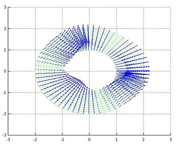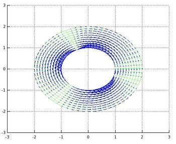 - [math] \vec u(\rho,\theta)=\frac{\sin(\pi \theta/2)}{\rho}\vec g_{\rho} [/math]