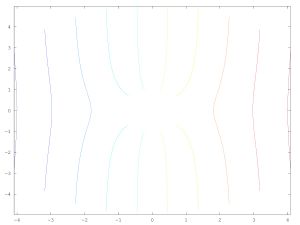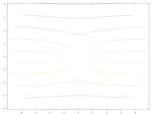 Se adjunta el código de las curvas de nivel de la función potencial en OCTAVE y la representación gráfica: