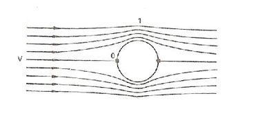 Suponiendo que la densidad del fluido es constante, se observa que la presión aumenta cuando la velocidad del fluido disminuye y viceversa. Así, se verifica la ecuación de Bernouilli. Conforme una partícula va acercándose al obstáculo, su velocidad va disminuyendo hasta alcanzar la mínima velocidad y a su vez la presión irá aumentando. Una vez la partícula llega al obstáculo, después de haber alcanzado su mínima velocidad, va disminuyendo la presión a la vez que la velocidad va aumentando hasta llegar a la velocidad máxima. De nuevo, experimenta una subida de presión cuando su velocidad vuelve a disminuir hasta anularse.