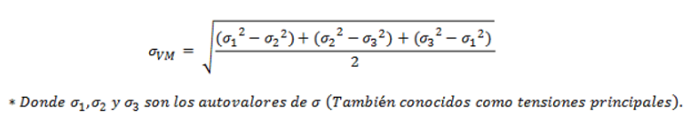 La tensión de Von Mises se define mediante la expresión:
