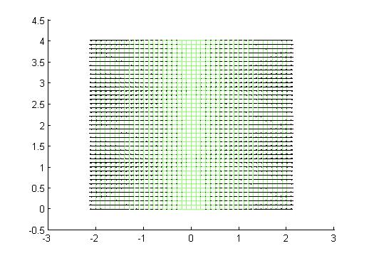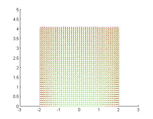 %Representación gráfica del efecto del campo de fuerzas sobre la placa