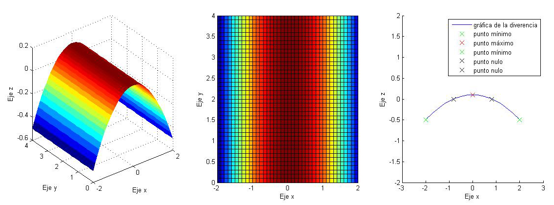 Teniendo en cuenta la expresión anterior, la divergencia del campo [math]\vec u(x,y)[/math] viene dada por: