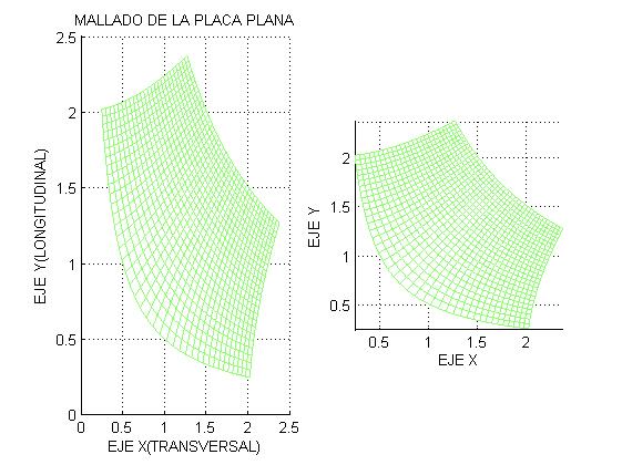 mesh(X+UX,Y+UY,0*X);%Representación superficial con líneas entrecruzadas de los desplazamientos producidos en la placa