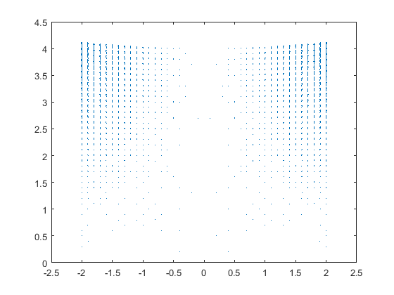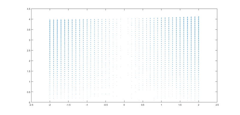 Ahora lo que haremos es representar el campo de vectores de los puntos del mallado calculado anteriormente. Para ello elaboramos el siguiente código: