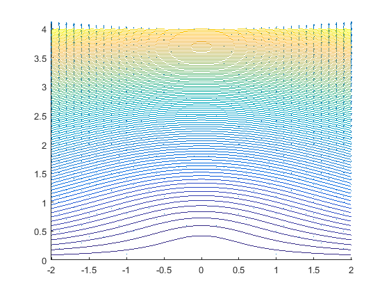 Podemos comprobar como el gradiente es ortogonal a las curvas de nivel superponiendo las dos representaciones: