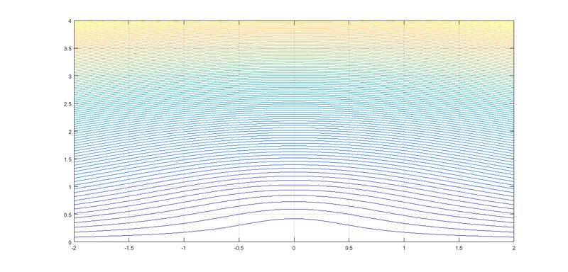 Para representarla, dibujamos las curvas de nivel de la función dentro del sólido. En nuestro caso, hemos decidido representar 100 curvas de nivel.