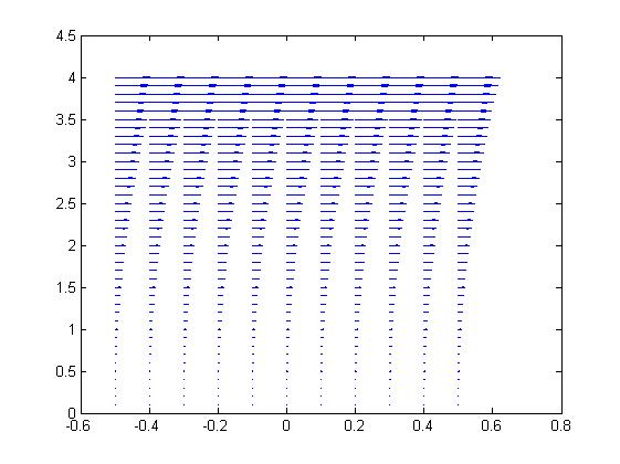 quiver(x,y,u,v) %Representación del campo vectorial de desplazamientos