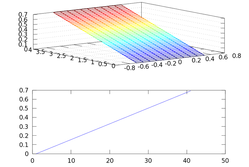 En Matlab/Octave aproximamos la integral con la función de densidad [math] f(u,v)= u·v·e^{-1/u^2} [/math] en el intervalo [math] [-0.5,0.5]\times [0,4] [/math]