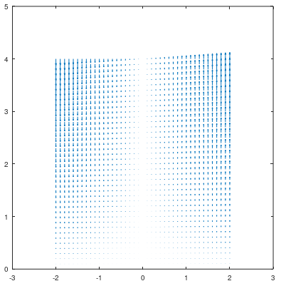 Dibujamos el el campo de vectores en los puntos del mallado del sólido con el código:
