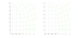 - Dibujar las tensiones tangenciales respecto al plano ortogonal a [math]\vec g_\rho[/math], es decir [math]|\sigma \cdot \vec g_\rho-(\vec g_\rho \cdot \sigma \cdot \vec g_\rho) \vec g_\rho|[/math]. ¿Donde son mayores? Compararlas con los puntos de mayor deformación de la malla.