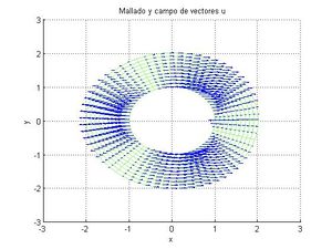 r(x,y,t)= r0(x,y,t) + [math] \vec u[/math]. Siendo [math] \vec u[/math]. nuestro campo [math] \vec u(\rho,\theta)=\frac{\sin(\pi \theta/2)}{30\rho}\vec g_{\rho}. [/math]