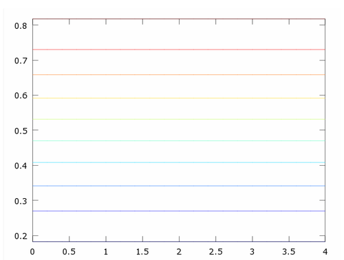 Por último comprobamos que la velocidad del fluido es nula en las paredes. La velocidad viene dada por: