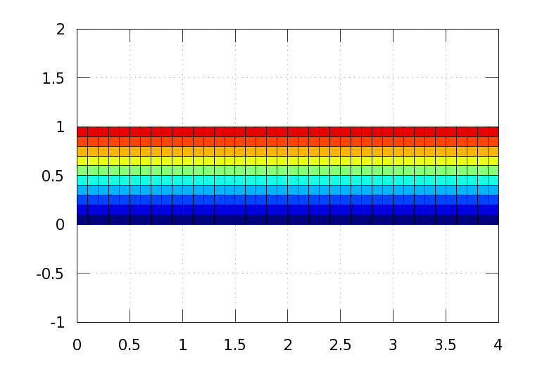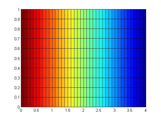 Con un programa informático (MatLab) realizamos un mallado que representa los puntos interiores del canal de dimensiones [0,4]x[0,1]. Los representaremos en la región [0,4]x[-1,2].