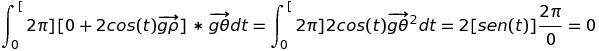 \(\overline{v} = \overline{k} \times \overline{u} =\overline{g_{z}} \times \overline{ u }=\begin{bmatrix} g_{ \rho } & g_{ \theta }& g_{ z }\\ 0 & 0 & 1 \\ sen \theta \big(1- \frac{1}{ \rho ^{2} } \big) & \rho ^{2}cos \theta \big( \frac{1}{ \rho } + \frac{1}{ \rho ^{3} } \big) & 0 \end{bmatrix}=\frac{1}{ \rho }\big\{-\rho^{2} cos \theta \big( \frac{1}{ \rho } + \frac{1}{ \rho ^{3} } \big) \overline{g _{ \rho } } +sen \theta\big( 1-\frac{1}{ \rho ^{2} } \big) \overline{ g_{ \theta } } \big\} =-cos \theta \big( 1-\frac{1}{ \rho ^{2} } \big) \overline{ g_{ \rho } }+ sen \theta \big( \frac{1}{ \rho } + \frac{1}{ \rho ^{3} } \big) \overline{ g_{ \theta } }\)