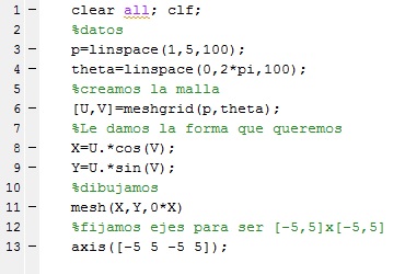 [U,V]=meshgrid(rho,th);
