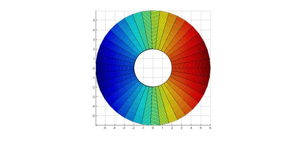 El primer paso para la la visualización de campos escalares y vectoriales de un fluido es delimitar la región de estudio. La región de estudio es una corona circular de radio menor 2 y radio mayor 6.